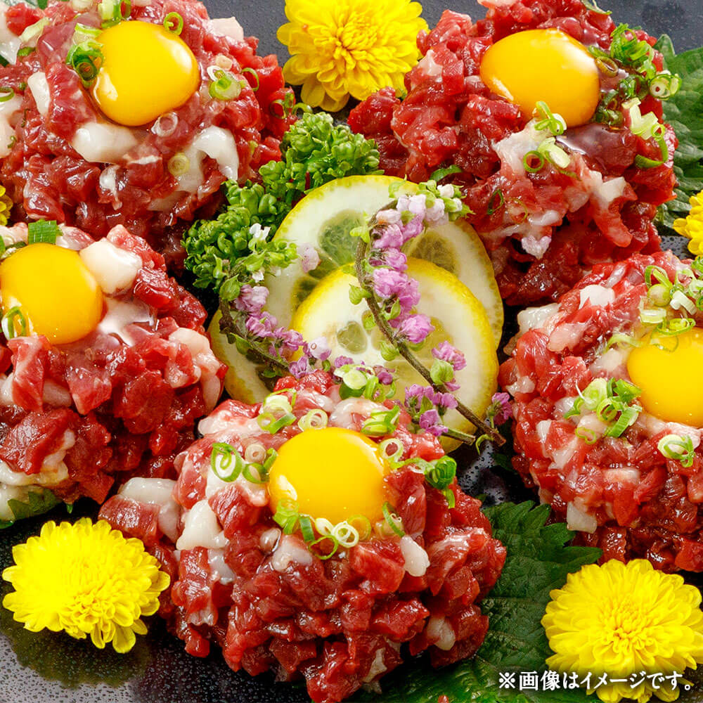 また、納豆に混ぜたり、山芋・うずらの卵・ねぎ・ごま・玉ねぎを使って本格的なユッケが楽しめます。