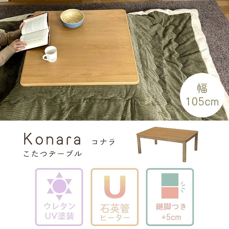 こたつ テーブル おしゃれ ローテーブル こたつテーブル 長方形 コタツ 炬燵 センターテーブル リビングこたつ 高さ調節 ナチュラル 北欧 木目 モダン リビング ダイニングこたつ コナラ 105cm 傷に強い UVウレタン塗装 ぽかぽか 石英管ヒーター 家具調 利根商会