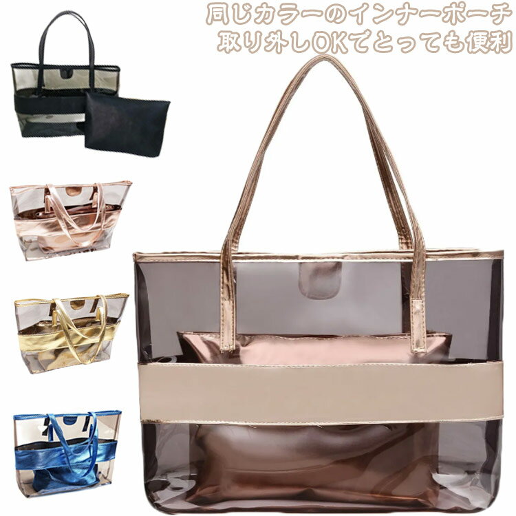 ビーチバッグ レディース 大人 女の子 大容量 プールバッグ 大人 送料無料 クリア トートバッグ 透明 ポーチ付き クリアバッグ バッグ 鞄