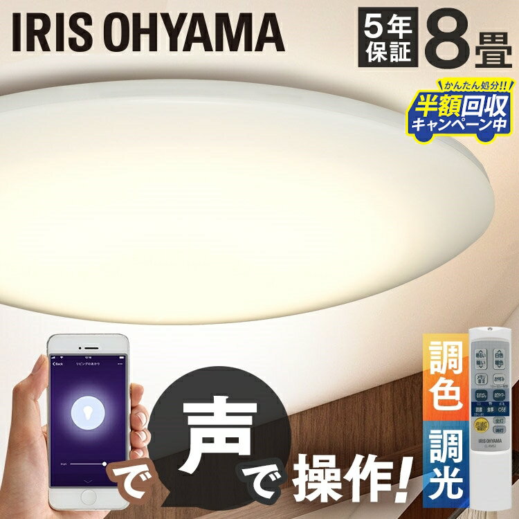 【即納】 シーリングライト 8畳 音声操作 リモコン付き AIスピーカー対応 調光調色 アイリスオーヤマledシーリングライト LED おしゃれ タイマー機能 遠隔操作 8畳用 led照明 Wi-Fi スマートスピーカー対応 省エネ CL8DL-6.0HAIT【あす楽】