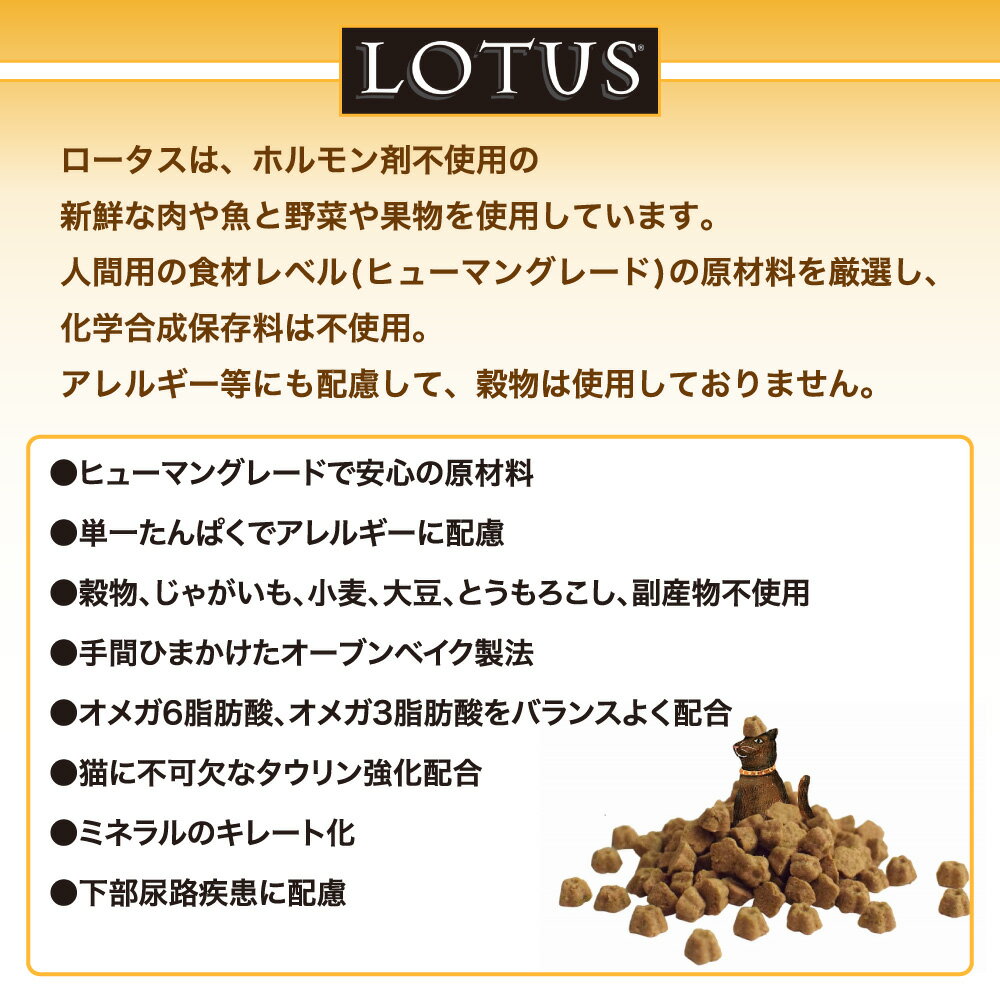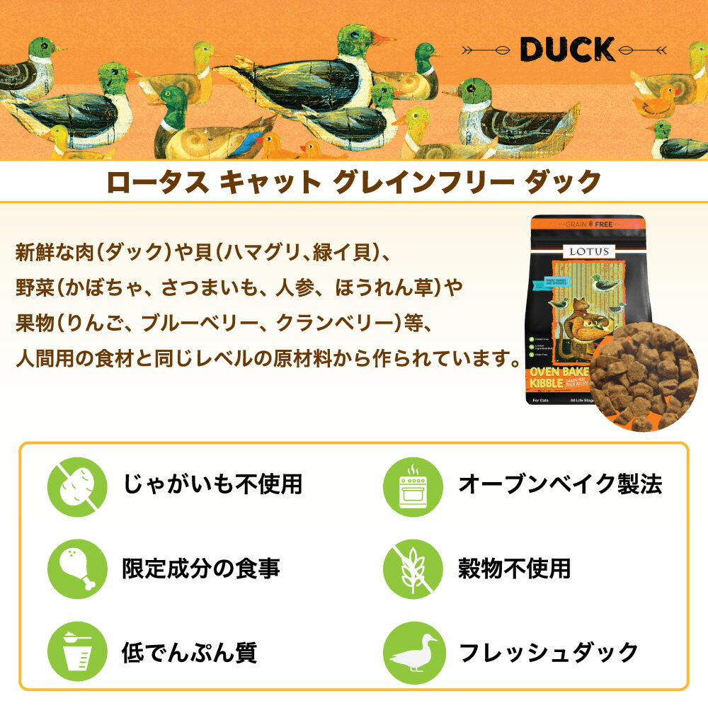 ロータス キャット グレインフリー ダックは、新鮮なダックの正肉が主原料のオールステージ対応の総合栄養食。