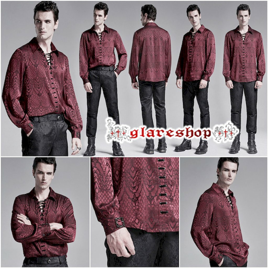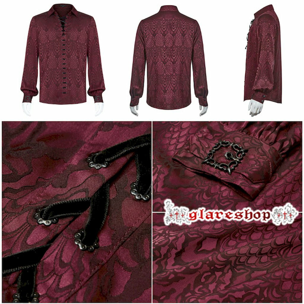 ゴスロリ【glareshop グレアショップ】「M.S-M.5XL」TX888-R■ゴシック ジャカード レースアップ カジュアルシャツ レッド×黒 メンズ | ゴスロリ ゴシック パンク ロック ファッション スチームパンク ヴィジュアル系 V系 モード系 コスプレ ステージ 衣装 服